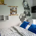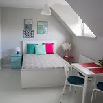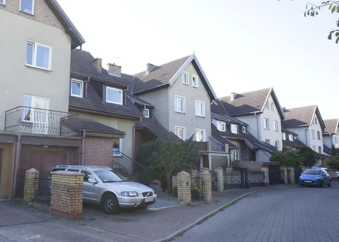 Dom Przy Borowinie ferielejlighed ligger i Kołobrzeg, 95 km fra Szczecin lufthavn, og tilbyder fri Wi-Fi i hele ejendommen. Værelserne indeholder et køkken som har en mikrobølgeovn, et køleskab og køkkenudstyr.
